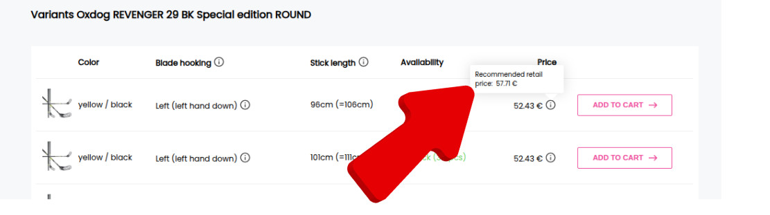 The recommended retail price (RRP) appears when you hover your cursor over the “i” symbol on each product.