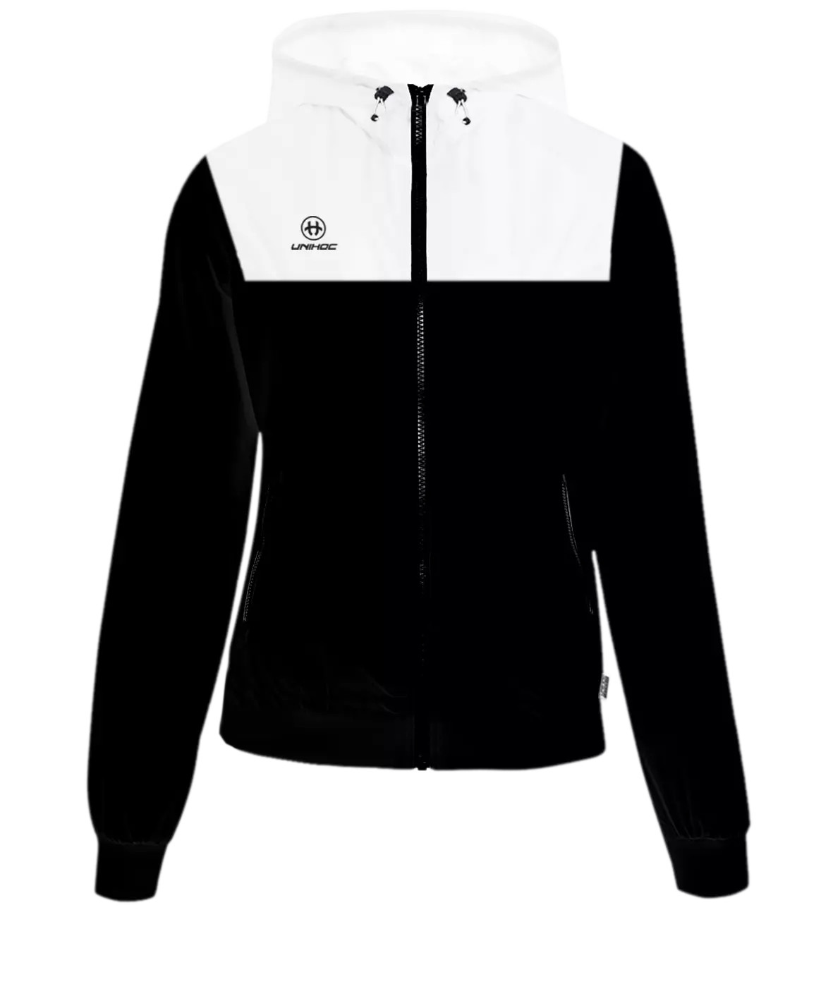 Sports wind jacket designed for both sports equipment and classic wear. Adapted cut in combination with breathable, lightweight polyester material for maximum wearing comfort. Lightweight jacket with a hood and ventilation on the back The hood has press studs to download. Two side zip pockets. Small Unihoc logo on the chest. Ideal jacket for running or outdoor pre-match warm-up.