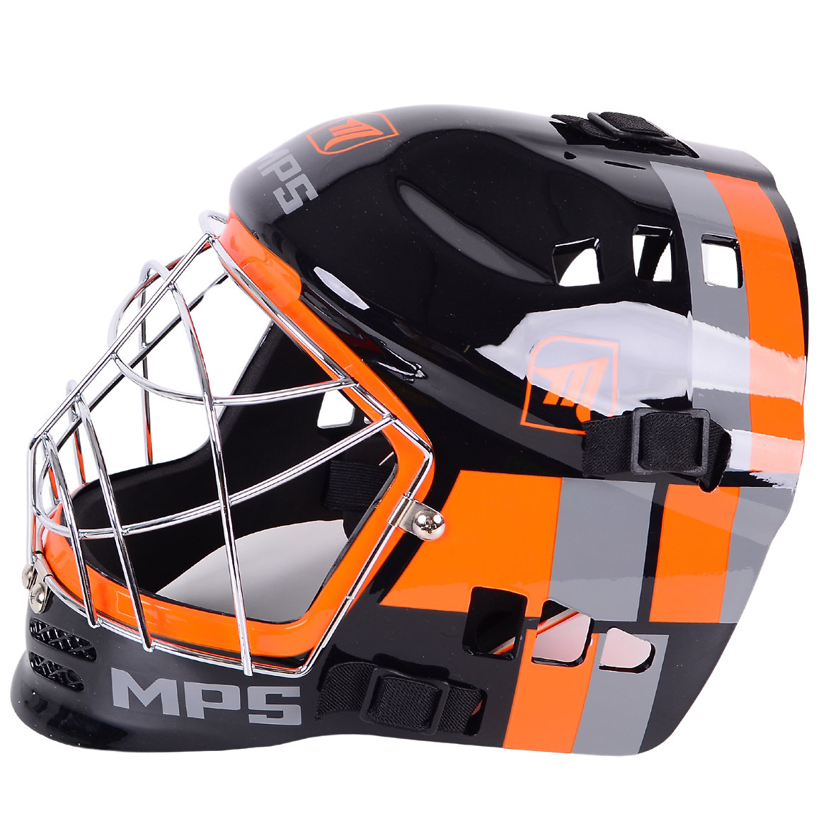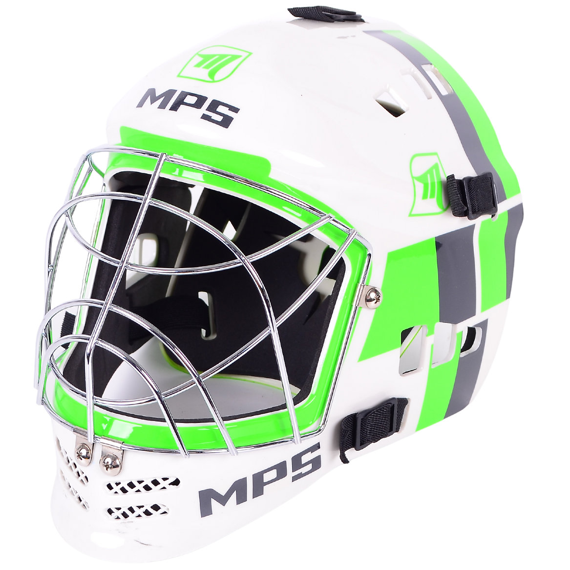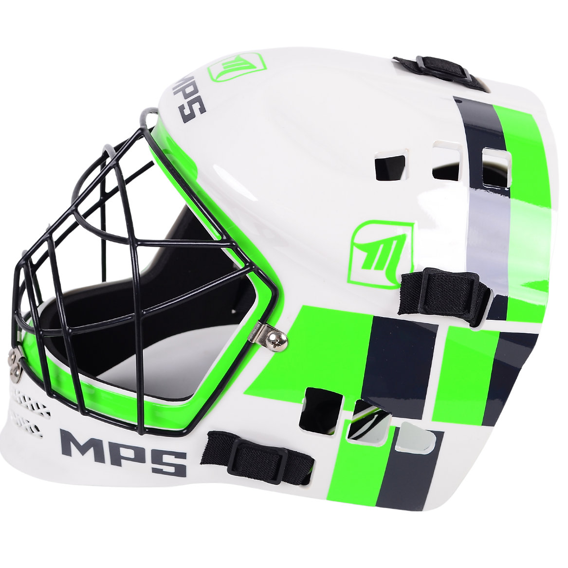 The MPS PRO Helmet is a goalie helmet for all ages designed with safety, comfort and performance in mind. This helmet provides players with the necessary protection while playing floorball, combining modern design with cutting edge protection technology. Improved design helmets and a special ventilation system guarantee maximum protection while keeping your head cool and dry.