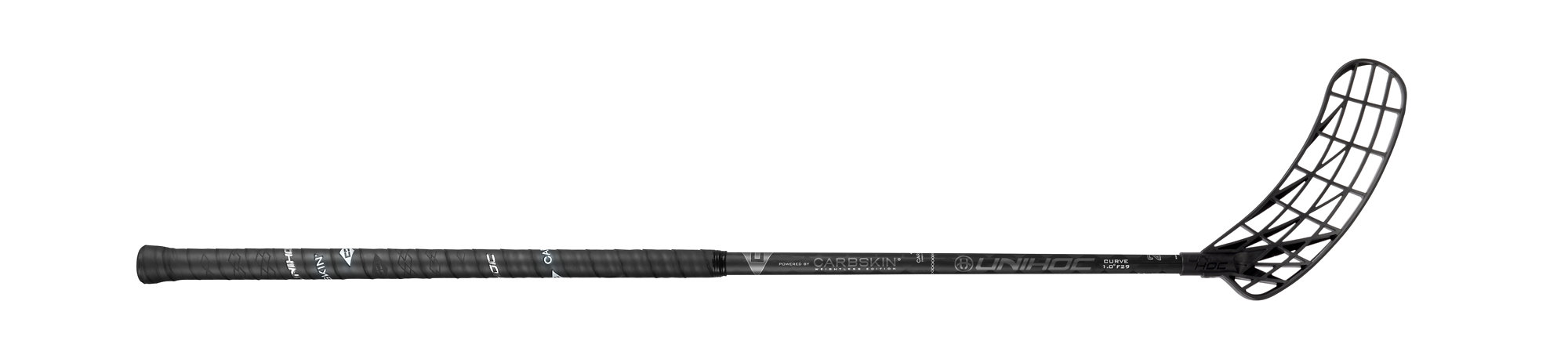 CARBSKIN® is the name of Unihoc most exclusive woven carbon fiber technology and it is pushing the benchmark of lightweight sticks to a totally new level in terms of required shaft properties. Utilizing a new cutting-edge layup structure for the construction of these shafts, and combining it with a thinner material, Unihoc has managed to improve the strength and durability to unmatched levels in the lightweight segment. The new construction process creates better consistency and strength in the physical properties of the shaft which dramatically improves the performance, and especially the balance. CARBSKIN® is not about compromises, you can find all the necessary features in one stick! The weight of these floorball sticks is under 200g.