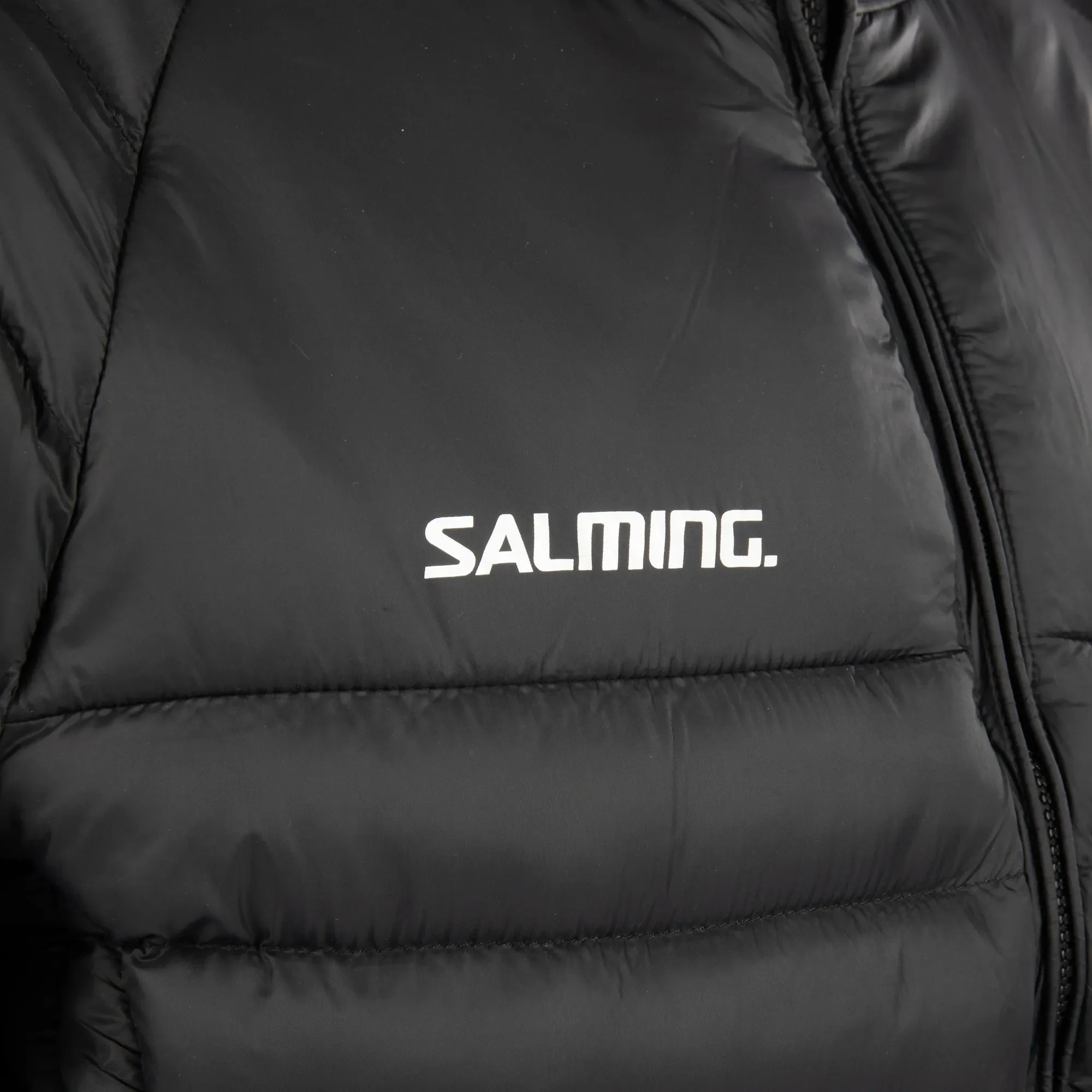 Lightweight and soft padded jacket from Salming. Perfect to wear between training sessions, matches, or during casual moments. Made from soft polyamide material and filled with polyester for superior warmth. Features a removable hood with adjustable drawcord, zippered side pockets, raglan sleeves for comfort, and a Salming logo on the chest.