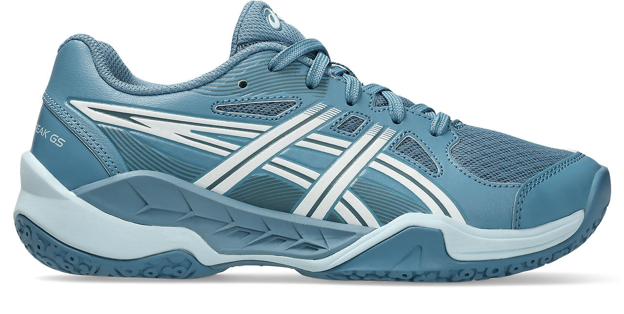 The ASICS GEL-POWERBREAK GS is a stability-focused indoor shoe designed for young and junior athletes executing dynamic offensive and defensive movements on the court. It stands out with its advanced FlyteFoam™ cushioning and reliable support during rapid direction changes. With STABITRUSS technology integrated into the sidewall, the shoe delivers outstanding stability in both the heel and forefoot areas. Its expanded sole structure provides a solid foundation for confident landings, while the engineered mesh upper with supportive materials offers a snug, breathable, and flexible fit. The ASICS NC Rubber outsole ensures excellent traction on indoor surfaces.